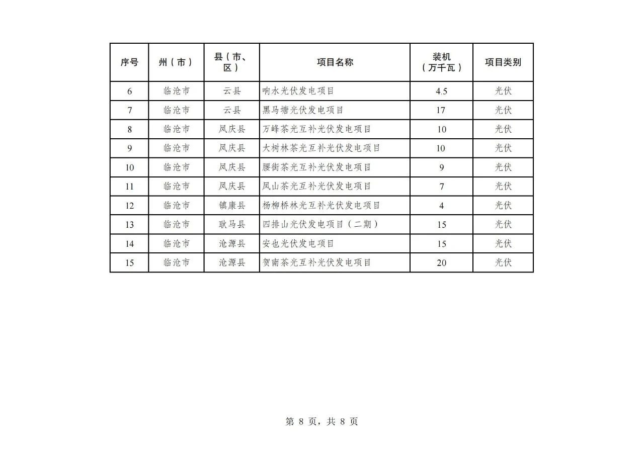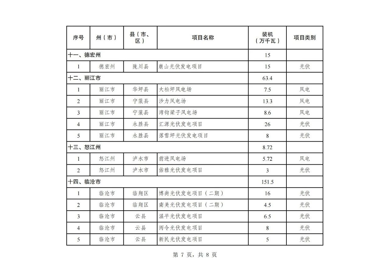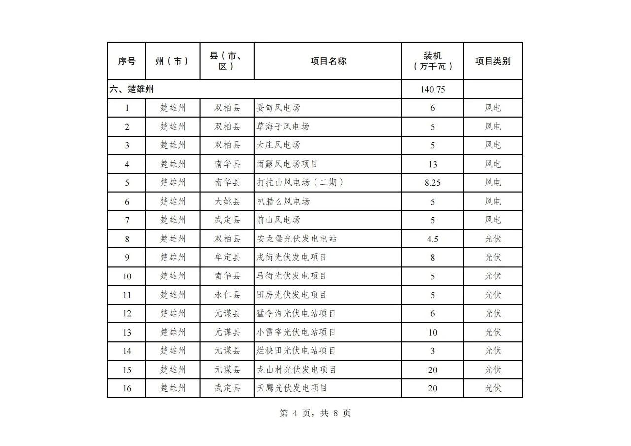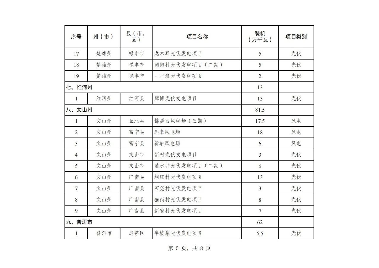 纳入云南省2024年第二批新能源项目开发建设方案实施的项目共108个,装机934.75万千瓦,其中,风电项目30个、装机容量242.26万千瓦,光伏项目78个、装机容量692.49万千瓦(详见附件)。